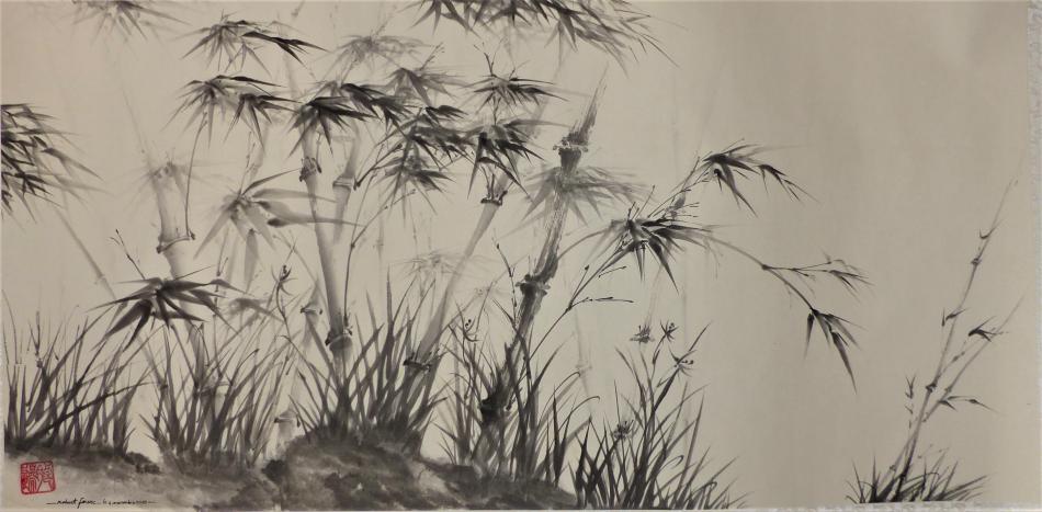 Dans les grands classiques de la peinture traditionnelle à l'encre, sont étudiés les 4 sujets majeurs qui sont jusqu'à nos jours le fondement de tout apprentissage sérieux : bambous, orchidées, prunus et chrysanthèmes.